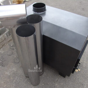 Normally the water circulates between the heater and the pool using the principal of thermosiphon (the movement created by rising hot water) and eliminates the need for a circulating pump or electricity. However, to assure a smooth flow of water it is required to install a low-speed electric pump between this heater and the pool. Recommended flow rate from 1500 – 2500 l/h (330 – 550 imperial gal/h) and the water pressure up to 0,4 bar. The heater is supplied with stainless steel chimney module, chimney consists of two parts and is 2m high.